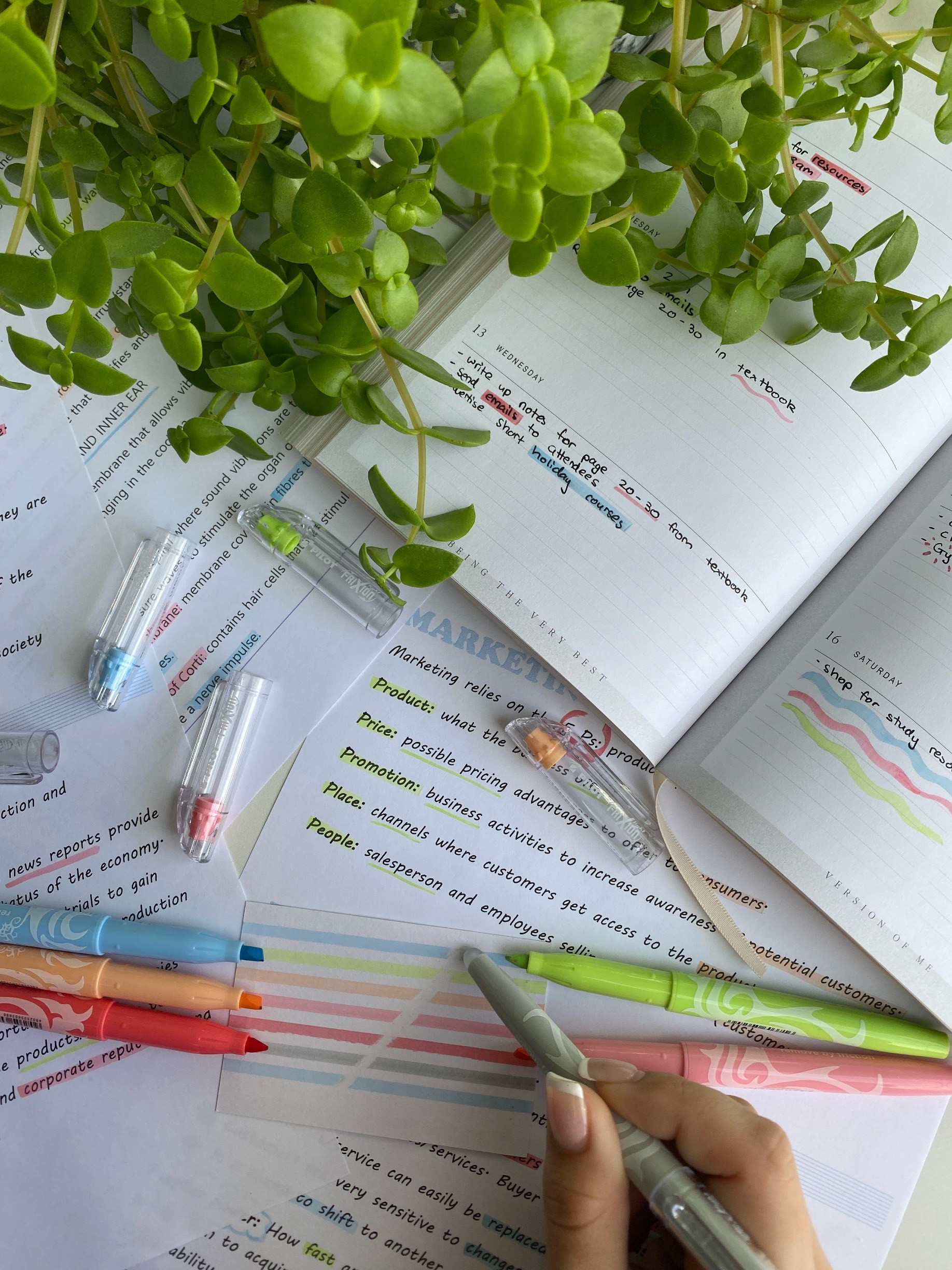 Sum up - Create weekly summary notes from each subject. Include a list of the syllabus dot points with the corresponding notes written below each one. This ensures you study every syllabus point without missing any. Highlight keywords to prompt your memory – I really love PILOT Pen’s Frixion Light highlighters as they’re erasable, so you can highlight notes and then erase them as many times as you like without making a mess.